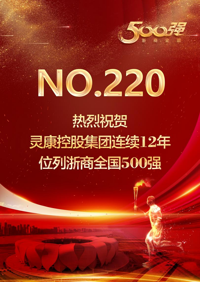 熱烈祝賀靈康控股集團連續(xù)12年榮登“浙商全國500強”榜單